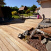 Lambourde en bois tropical haute densité (900+ kg/m³), idéale pour terrasses et abords de piscine. Elle assure une structure solide, empêche les déformations, et prolonge la durée de vie du platelage. Indispensable pour une installation durable et garantie.